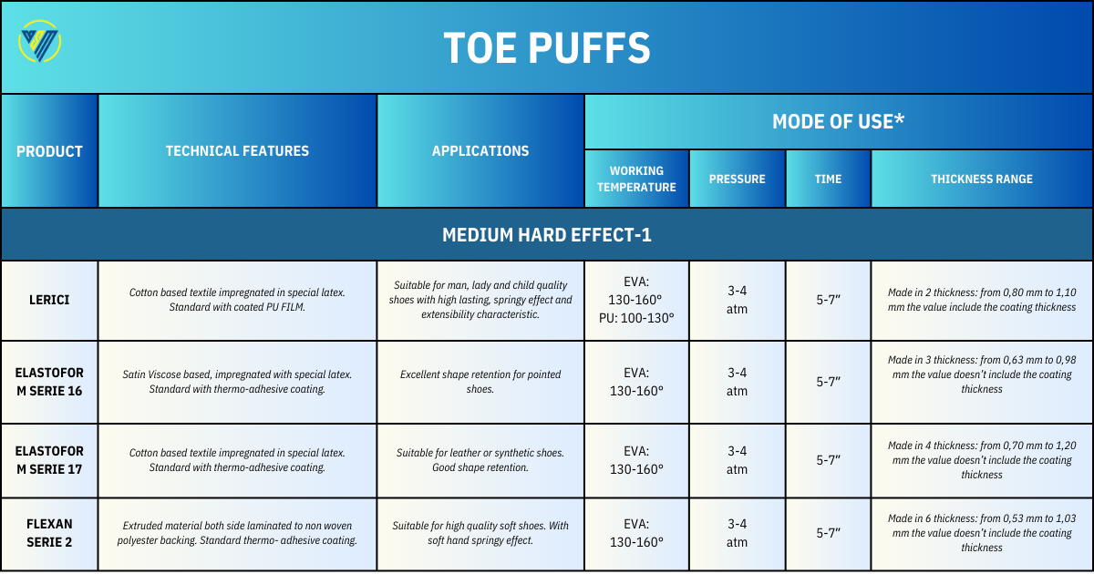 Toe-puff là một loại vật liệu bảo vệ được sử dụng trong sản xuất giày dép. Toe-puff thường được đặt ở mũi giày (toe box) để giữ cho mũi giày không bị méo hoặc biến dạng sau khi sử dụng một thời gian.